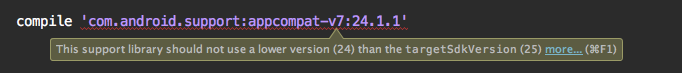 compile ‘com.android.support:appcompat-v7:25.1.0’